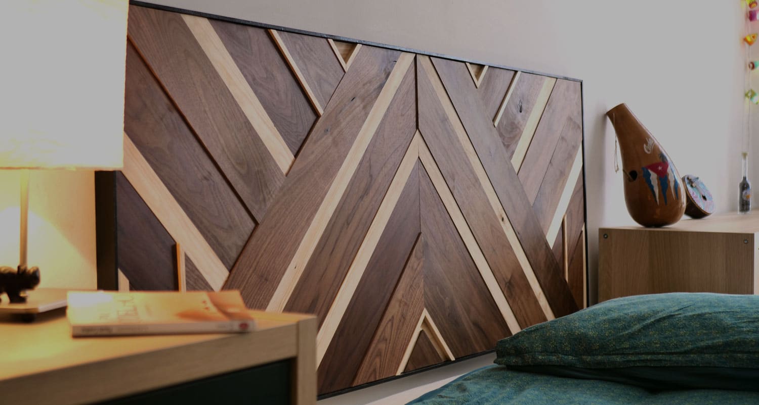 Voici différentes têtes de lit réalisées à partir de bois recyclés ou de bois nobles.
